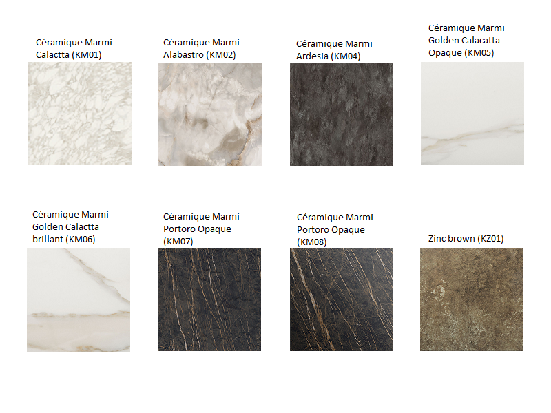 Marmi Keramikschale in Calacatta (KM01), Alaastro (KM02), Ardesia (KM04), Golden Calacatta opaque (KM05), Golden Calacatta gloss (KM06), opaque Portoro (KM07), brilliant Portoro (KM08) oder Zinc Brown (KZ01).