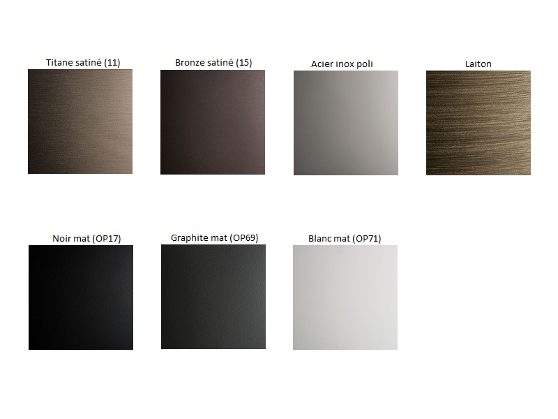 Les petites irrégularités de réflexion sur la base en acier inox, ou l'effet nuage sur la base en titane satiné et bronze satiné, sont dues à une fabrication manuelle.