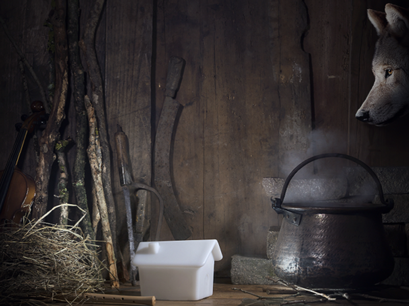 Lampe inspiriert von der Geschichte der drei kleinen Schweine.