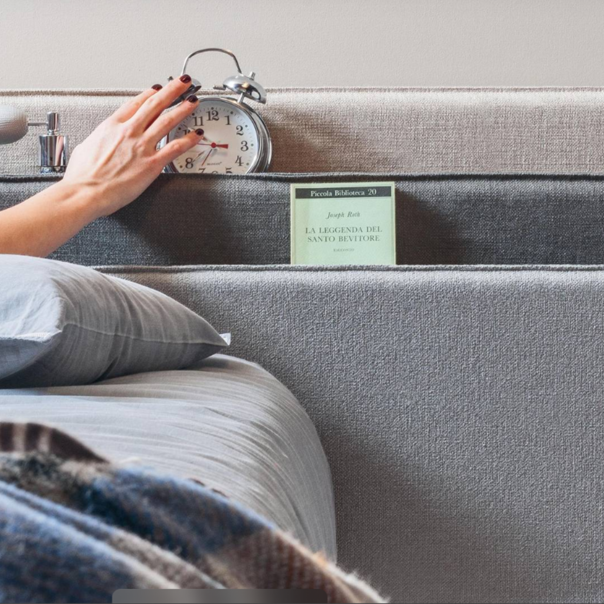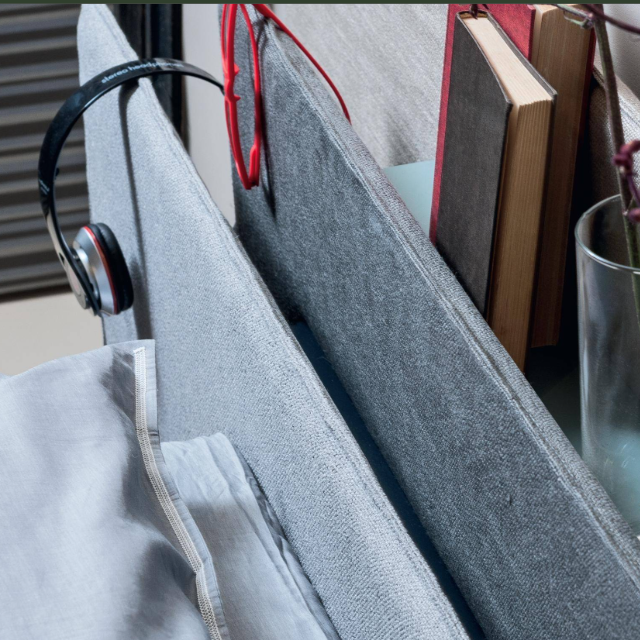 Lit Vele — Lago. Tête de lit accessoirisable composée de trois panneaux décalés créant des niches pour garder accessoires et livres à portée de main. Délai de livraison : 6–8 semaines Contactez-nous...