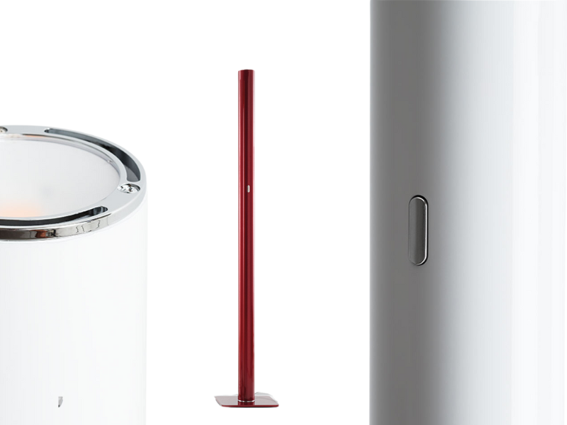 Base en zamak verni, tige en aluminium verni. Le diffuseur, en polycarbonate recouvert de satin de soie, grâce à sa finition originale, permet d’obtenir deux esthétiques différentes: gris aluminium lorsque...